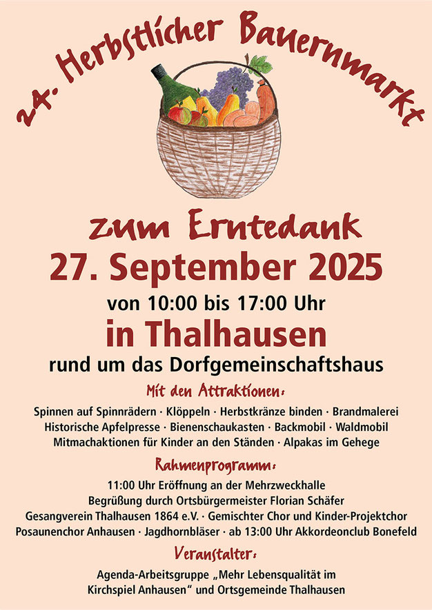 Der traditionelle Bauernmarkt im Kirchspiel Anhausen findet am Samstag, 28. September 2024, in Meinborn statt. Wir freuen uns sehr, dass wir auch in diesem Jahr wieder teilnehmen können.